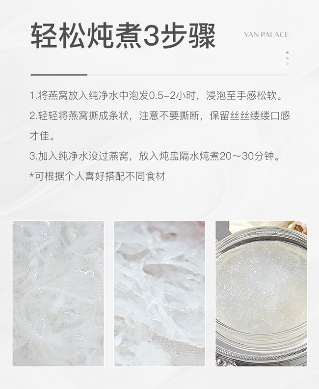 千百年來,燕窩在人們心目中一直被視為養(yǎng)顏的滋補(bǔ)品。時至今日,燕窩是雨燕目雨燕科的部分雨燕和金絲燕屬的幾種金絲燕分泌出來的唾液,再混合其他物質(zhì)所筑成的巢穴。又稱燕菜、燕根、燕蔬菜,燕窩按筑巢的地方可分為“屋燕”及“洞燕”兩種,洞燕因其受礦物質(zhì)影響導(dǎo)致顏色不同,有白燕、黃燕、紅燕之分,而屋燕只有象牙白一種顏色。